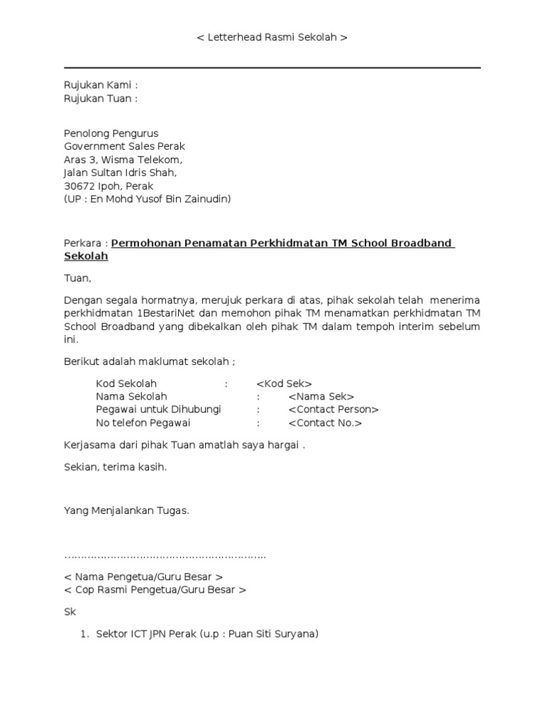 Contoh Surat Penamatan Internet Sekolah1 Pdf